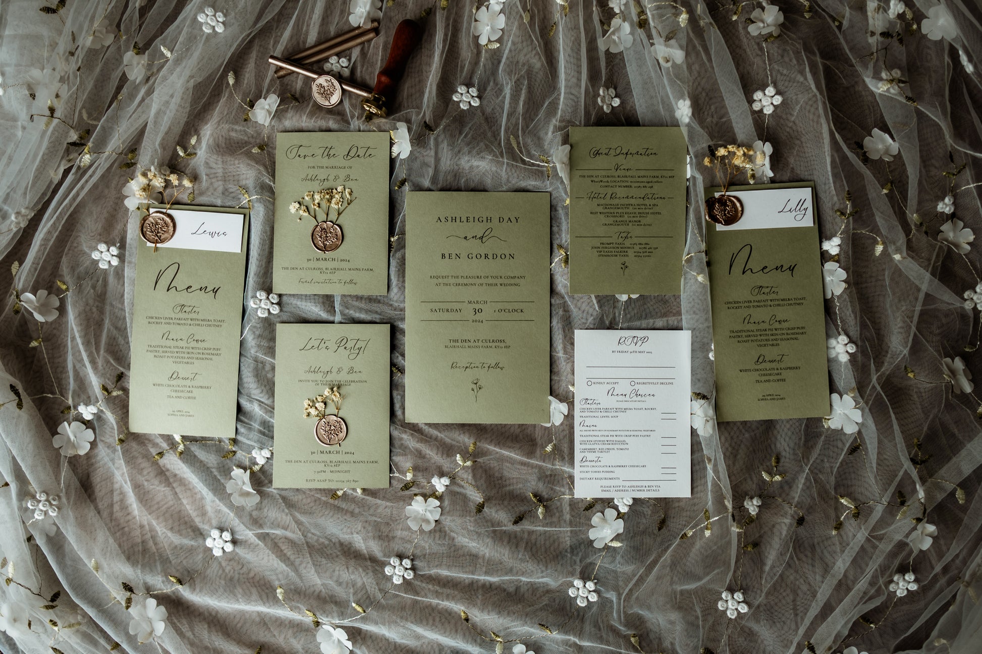 Complete your wedding suite with our coordinating The Culross Suite invitations and on-the-day-stationery, designed to complement this elegant set, ensuring a cohesive and stylish look for your big day.