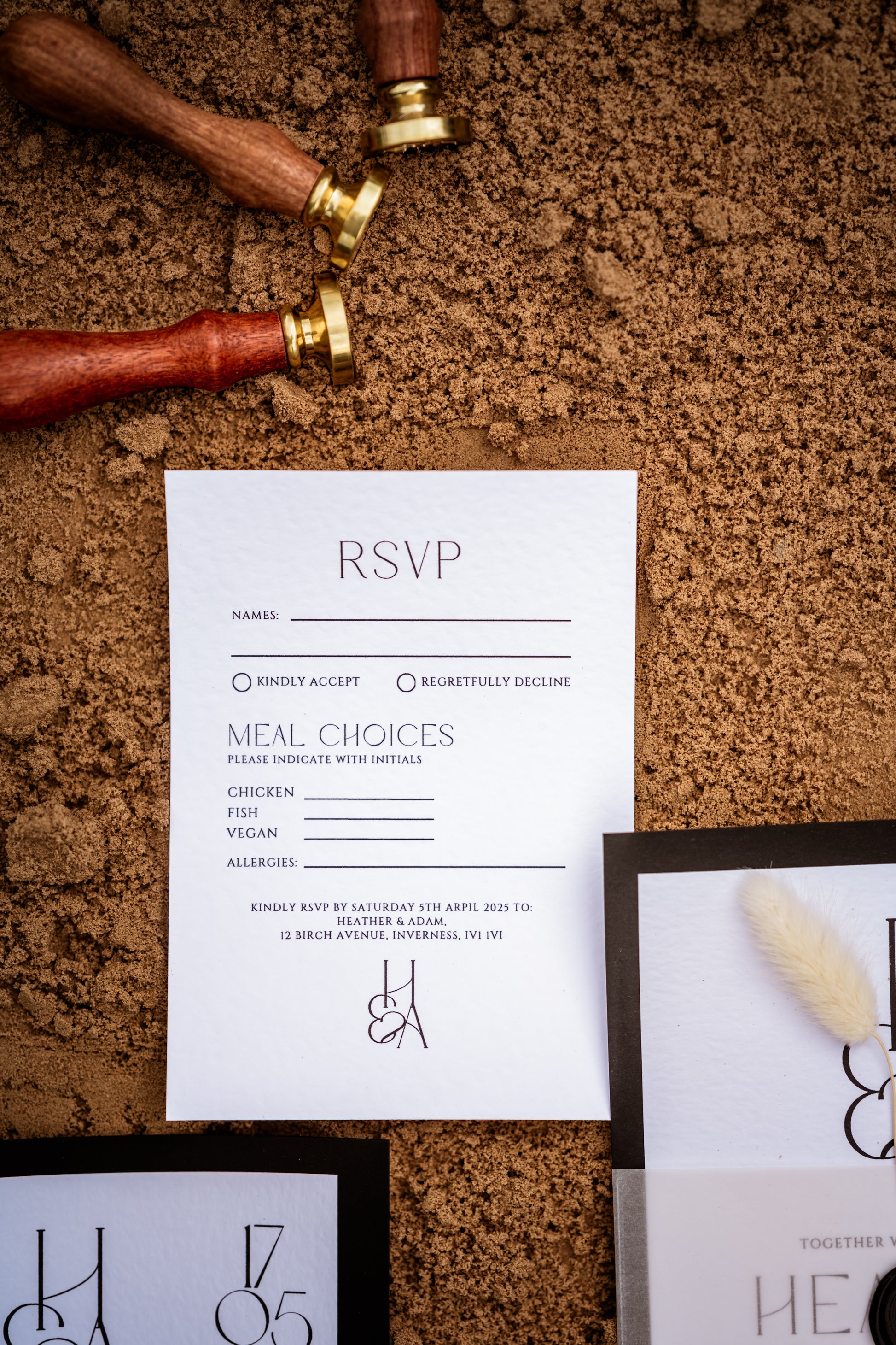 The Highland Suite | Luxury Wedding Invitation Set | Minimalist Black & White Monogram Design